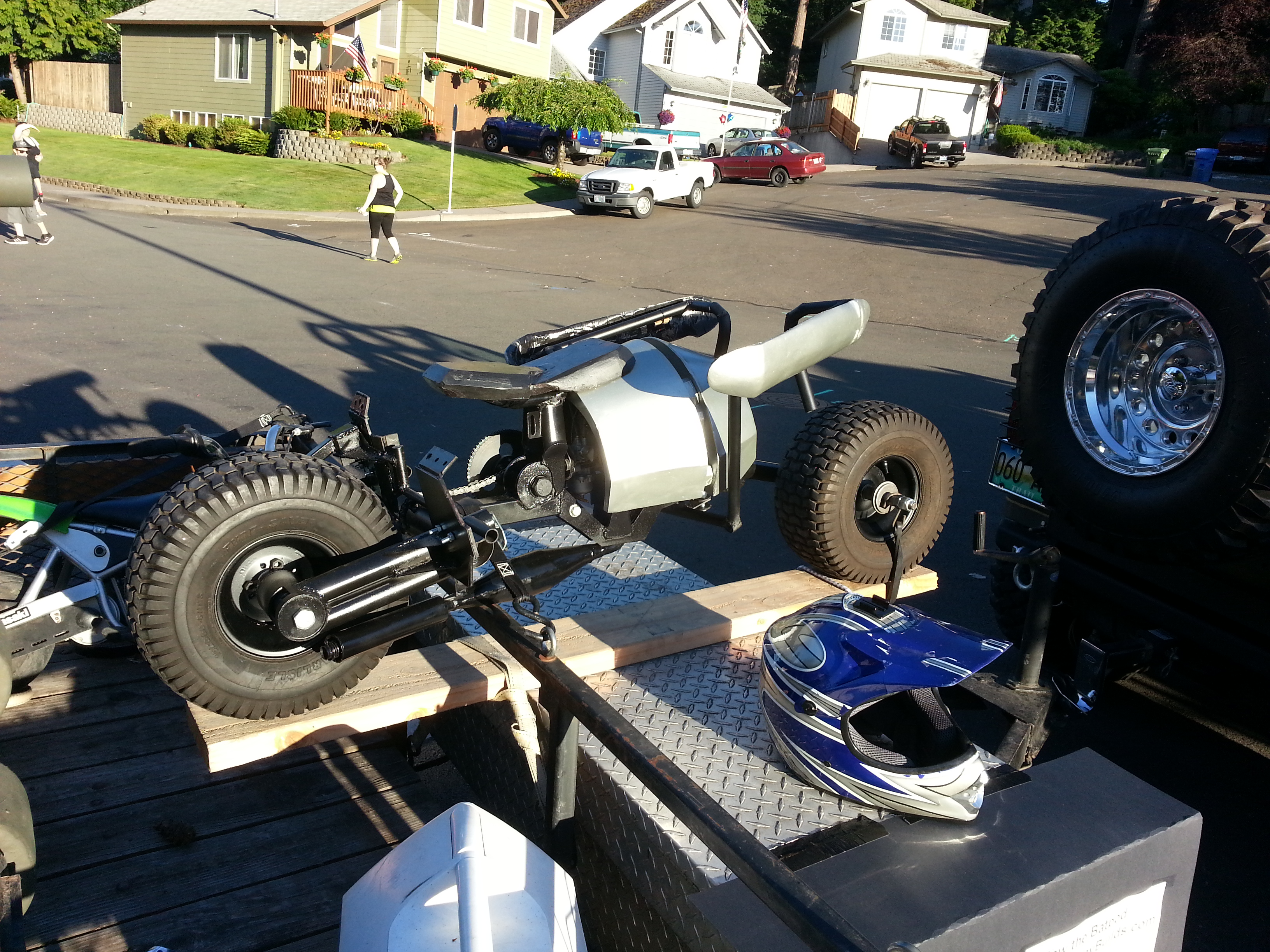 And once the gas tank was hooked up, it was time to fill it with gas, and fire up the motor. For testing pruposes the engine cover was just set in place. Also note that the twist throttle and kill switch are installed.