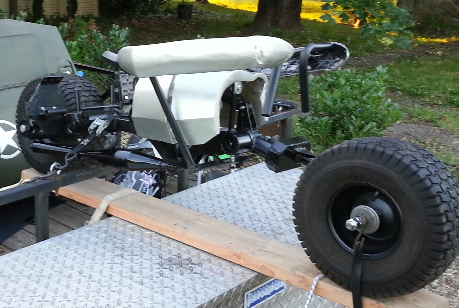 Trying to get it closer to looking done for the parade next week. It’ll just be on a trailer, so don’t need to worry about making it safe for a 4 year old to ride just yet (chain-guards, brakes, etc). So knocking out a few key aesthetic details/components…